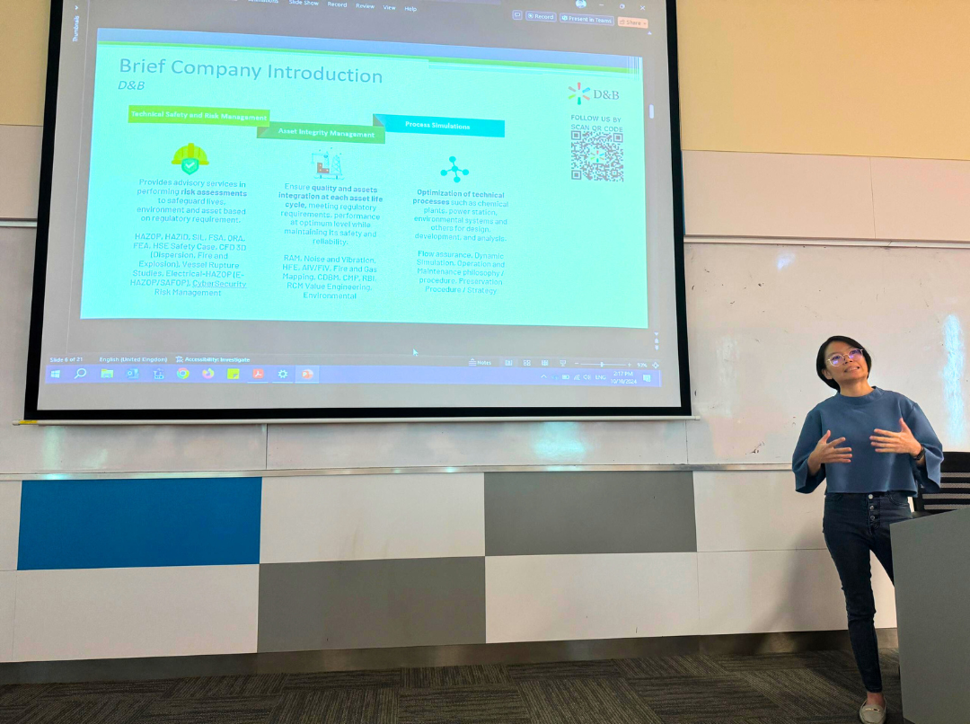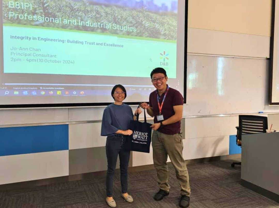 We’re proud to share that Jo-Ann Chan represented D&B Energy Sdn. Bhd. as a guest lecturer at Heriot-Watt University for the Professional and Industrial Studies program! Her lecture, on “Integrity in Engineering: Building Trust and Excellence,” offered valuable insights into fostering trust and upholding standards in engineering. 👩🏻🏫📚