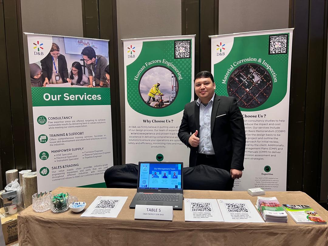 We’re excited to announce that D&B Energy Sdn. Bhd. are one of the few sponsors of the One-Day IMM Corrosion Conference 2024 in Kuala Lumpur! Connecting with industry pioneers and sharing our forward-thinking approach to asset integrity was truly inspiring.