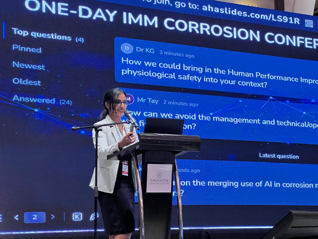 Ts. Karthika Rajith, who was representing D&B Energy Sdn. Bhd., delivered an insightful presentation at the One-Day IMM Corrosion Conference 2024 in Kuala Lumpur. 🗣 🎤